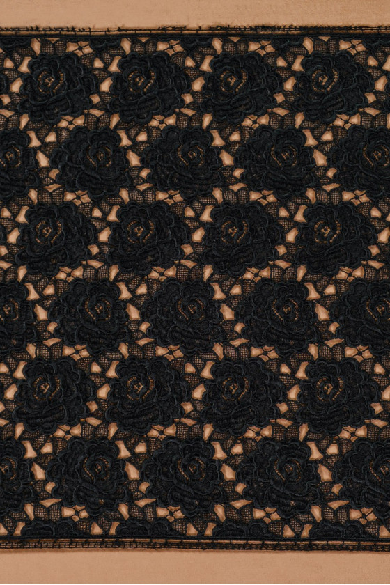 Hustě tkaná guipure krajka. Dá se použít k šití korzetů, sukní, malých bund nebo jako doplněk k jiným outfitům
