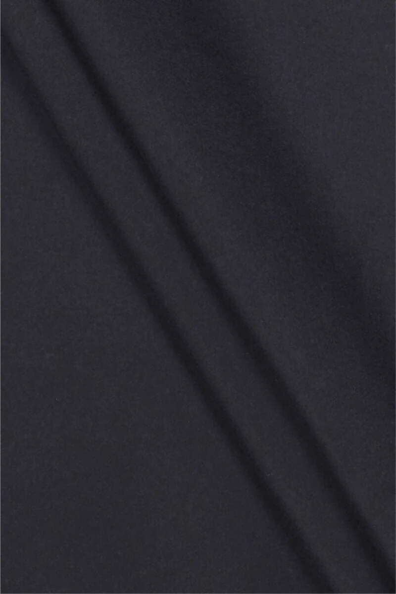 Italská kabátová tkanina tkaná ze střižní vlny s příměsí polyamidu v tmavě tmavě modré barvě. Látka je pevně uspořádaná, nepružná a masitá. Vlněné látky jsou ideální pro svrchní oděvy (kabát, bunda, vesta), protože hřejí a zároveň umožňují pokožce dýchat.