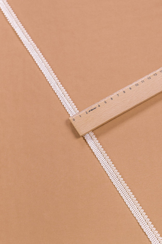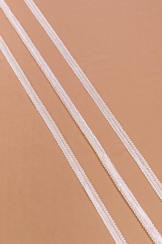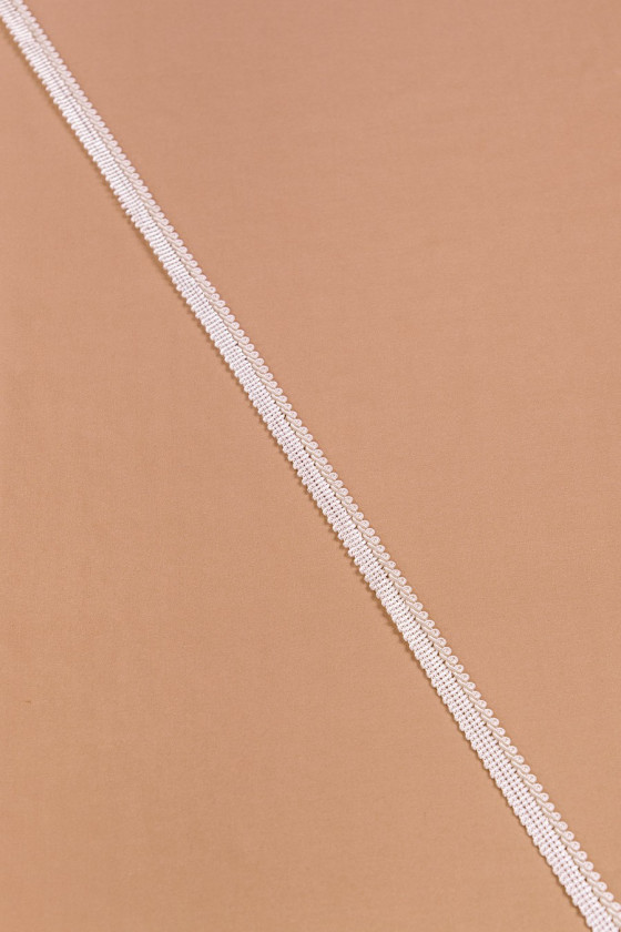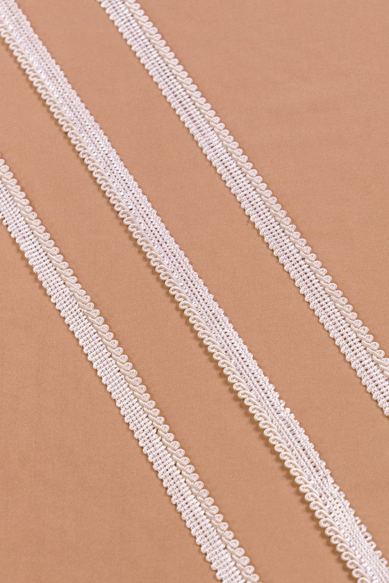 Italská galanterní páska v perleťové barvě. Motiv zajímavých "smyček" z provázku. Ideální pro dokončování svatebních a bavlněných látek.
