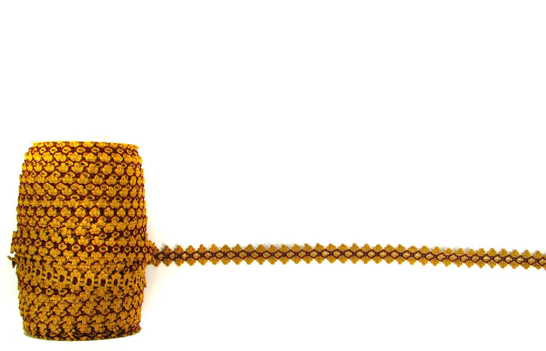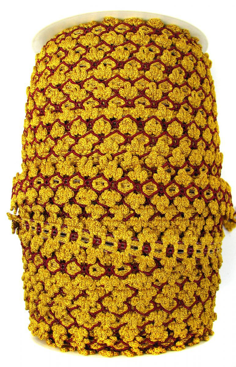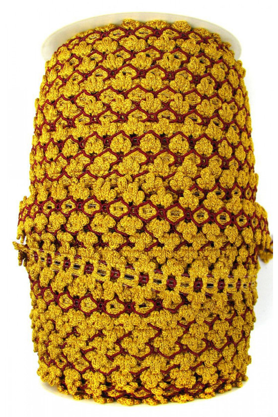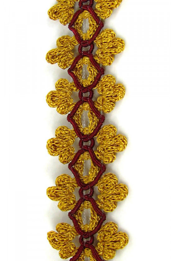 Galanterní páska v barvách: medově žlutá a vínová. Pěkný krejčovský doplněk k dokončení outfitu.
