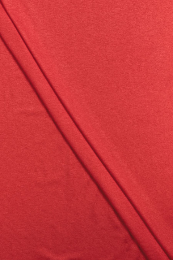 Italská pletenina utkaná ze 100% mikromodalu v červené barvě. Pletenina je střední tloušťky, měkká, příjemná na dotek a elastická. Doporučujeme ji k halenkám, topům, tričkům a legínám.
