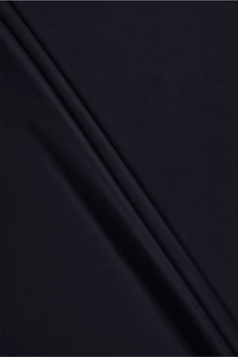 Italská podšívka tkaná z polyesteru a viskózy v velmi tmavě tmavě modré barvě. Neelastické, mírně lesklé, střední tloušťky, s hladkým tkaním. Ideální na podšívku kabátů, bund, vest, bund.