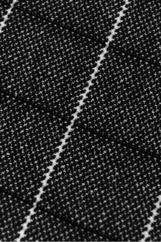 Italská látka s černobílou kostkou tkaná z přírodní vlny a viskózy.