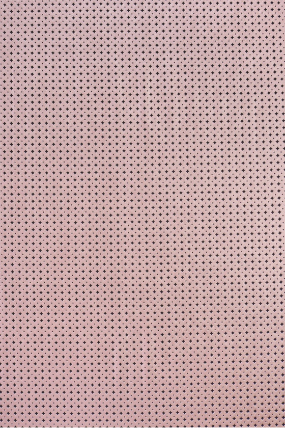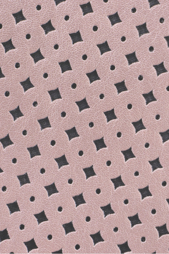 Eko prolamovaná kůže ve světlé, duhově růžové barvě. Struktura se skládá z malých, vzájemně propojených kruhů.