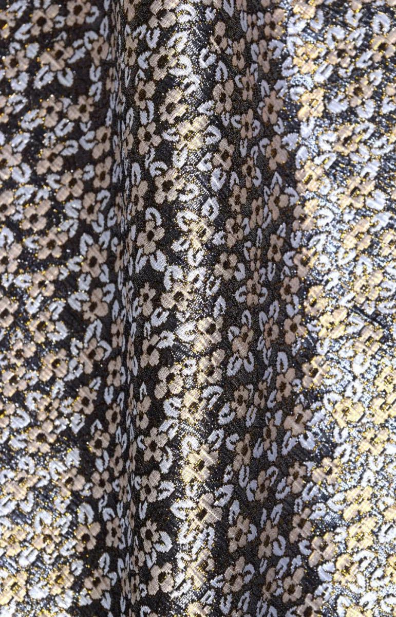 Krásný žakár s velmi hustým vzorem drobných květů. Tkanina je neelastická, mírně tuhá, s leskem. Ideální pro saka, šaty, sukně a tenké kabáty.